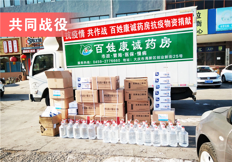 2020年2月4日向大慶市慈善會(huì)捐贈(zèng)價(jià)值12萬余元的抗疫物資:消毒液、護(hù)目鏡、酒精、二氧化氯、連花清瘟膠囊、抗病毒口服液、雙黃連口服液、脾氨肽膚凍干粉。定向捐贈(zèng)給:大慶人民醫(yī)院、大慶油田總醫(yī)院。以保障抗疫物資需求。