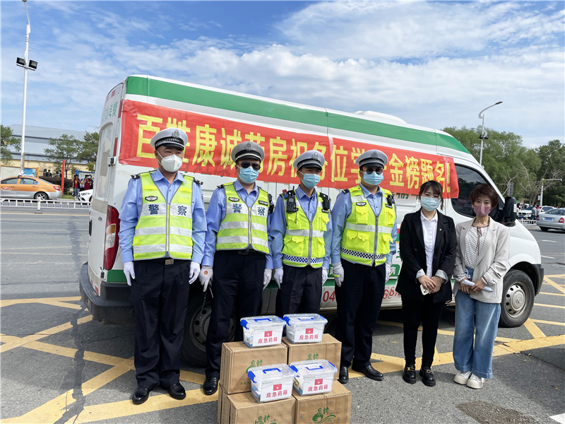 2022年6月百姓康誠(chéng)藥房攜手大慶交通廣播到實(shí)驗(yàn)中學(xué)考點(diǎn)助力高考,為交警同志帶來飲用水和應(yīng)急藥品