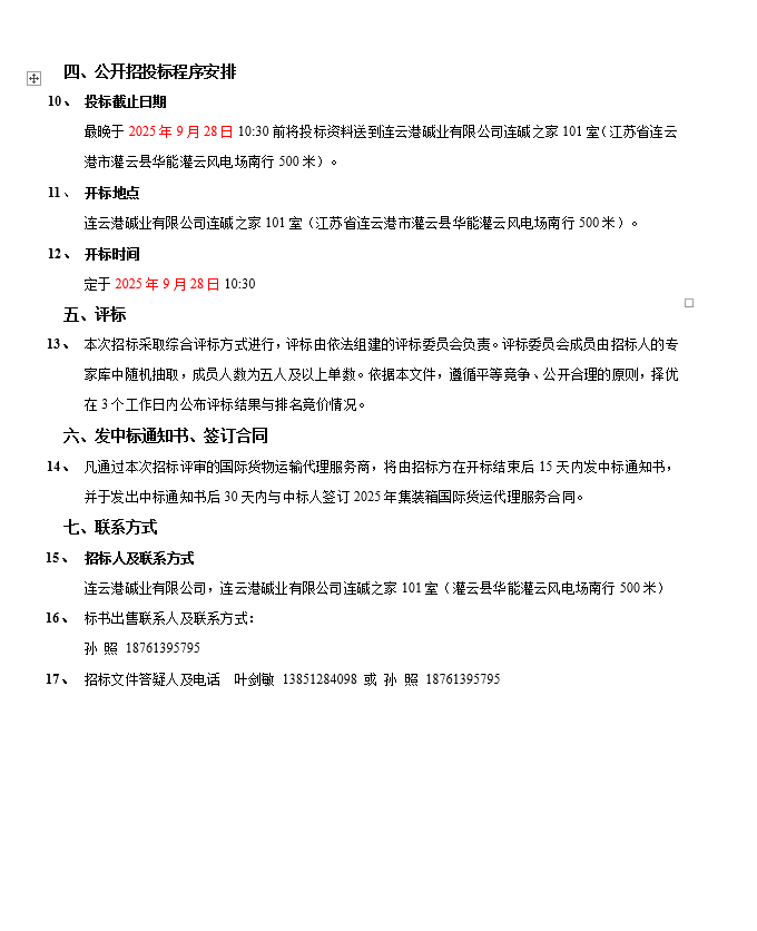連云港堿業(yè)有限公司集裝箱國際貨運(yùn)代理服務(wù)商項(xiàng)目招標(biāo)公告