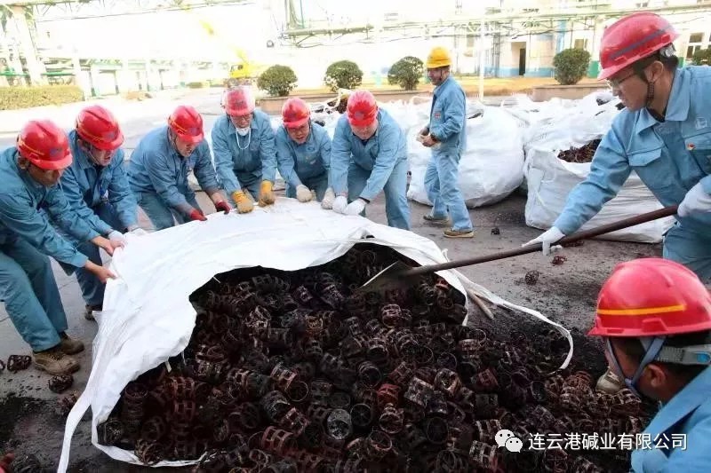 11月7日,重堿車間1#蒸餾塔計劃檢修,在檢查過程中發(fā)現(xiàn)鮑爾環(huán)被堿渣堵塞嚴重,影響正常輪換。11月12日,車間將塔內(nèi)舊填料扒出,足足有75立方??紤]到這些填料清理干凈后還有利用價值,車間牢固樹立“過緊日子”的思想,打算自行組織職工清理。
