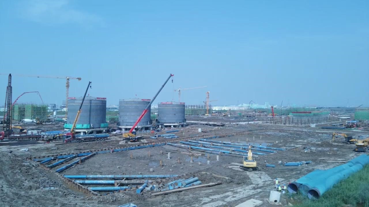 ⑶聯(lián)堿三標(biāo)段420脫鹽水站室外水池底板鋼筋綁扎;810火炬基礎(chǔ)短柱砼澆筑;561事故水池第一段砼澆筑完成,第三段開始鋼筋綁扎;540小蘇打裝置基礎(chǔ)防腐、4個(gè)設(shè)備基礎(chǔ)養(yǎng)護(hù);160編織袋庫防腐粉刷;535成品庫房33軸~44軸筏板鋼筋模板安裝、筏板砼澆筑、承臺(tái)及基礎(chǔ)梁開挖。