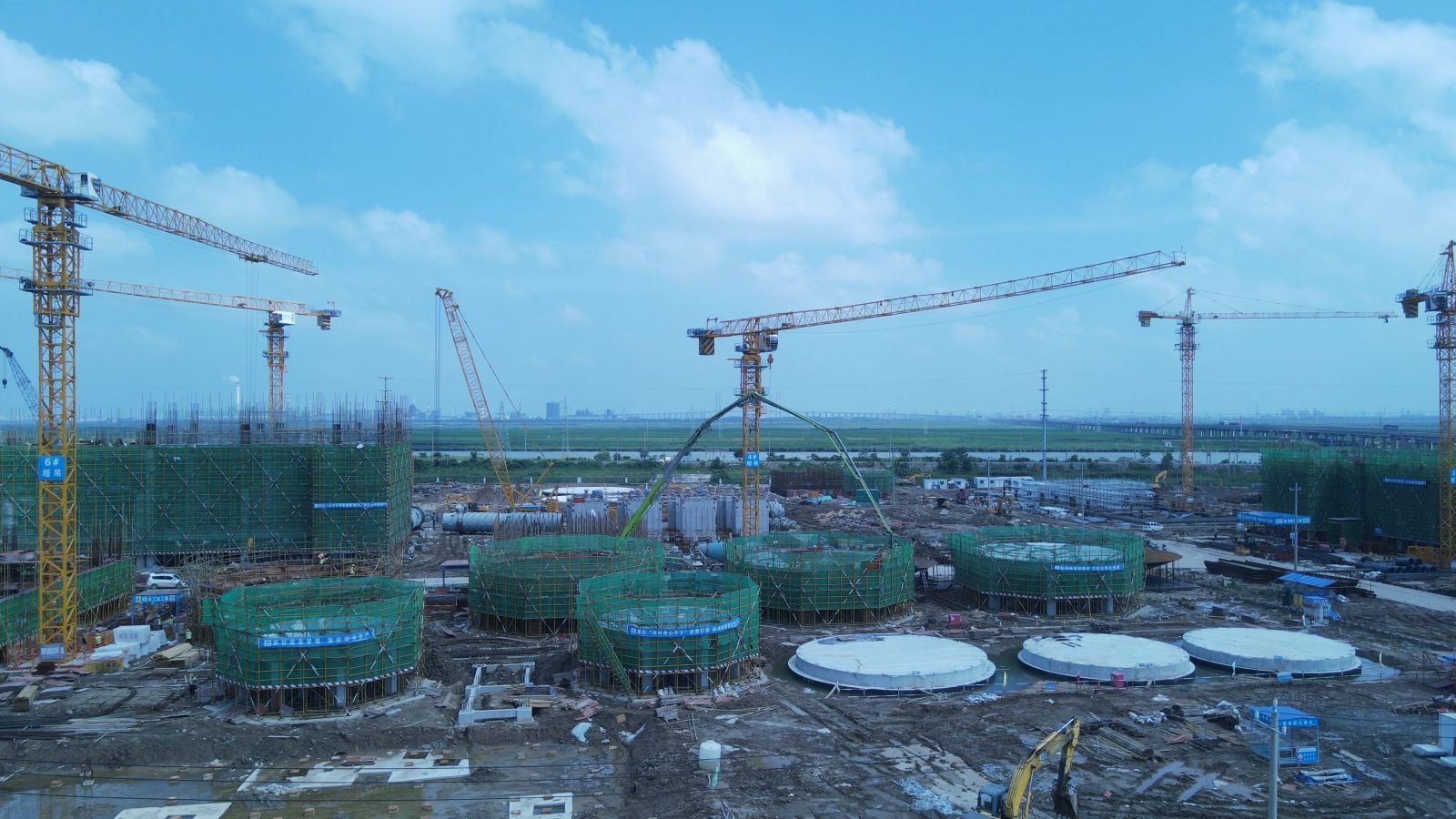 ⑴聯(lián)堿一標(biāo)段101b聯(lián)堿辦公樓砌體及二構(gòu)施工;152中心控制室鋼結(jié)構(gòu)屋面安裝,基礎(chǔ)磚墻±0m以下砌筑;151化驗中心地坪以下砌體施工準(zhǔn)備;340機(jī)電儀維修廠房鋼結(jié)構(gòu)屋面工程,廠家預(yù)制加工完成;510重堿車間蒸吸罐區(qū)其他非標(biāo)設(shè)備基礎(chǔ),V51301A/B頂板及加強(qiáng)筋拼裝、V51301A溢流箱內(nèi)加強(qiáng)筋安裝;532重灰工段深基坑接樁,土方回填;280b換熱站屋面鋼結(jié)構(gòu)工廠預(yù)制基礎(chǔ)磚墻±0m以下砌筑;550壓縮及冷凍裝置空冷器框架,廠房基礎(chǔ)澆筑。