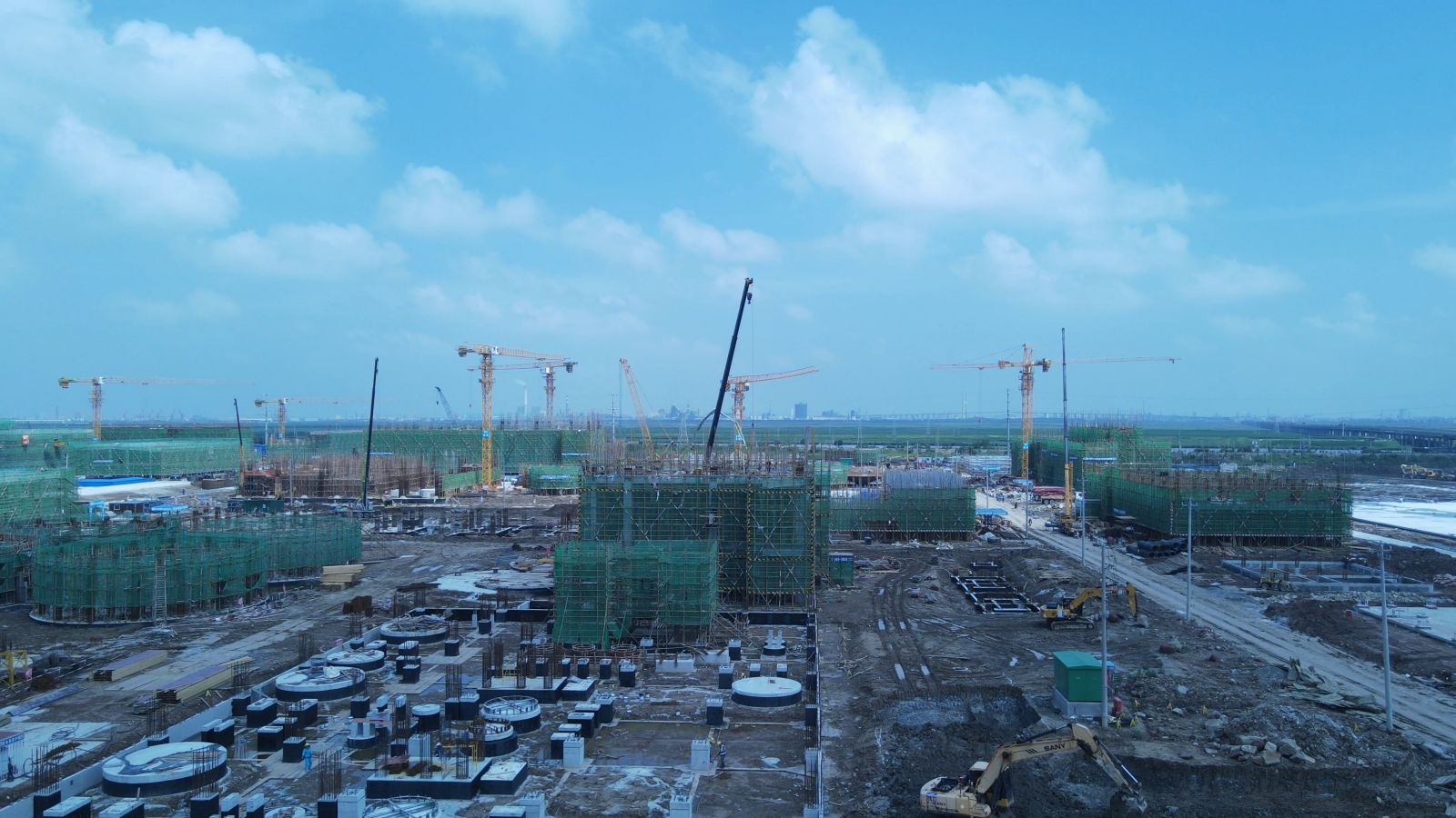 ⑸合成氨二標(biāo)段271原料煤儲運破碎樓三層底板放線,#1轉(zhuǎn)運站頂層梁板柱澆筑,#2轉(zhuǎn)運站三層支撐架搭設(shè),鋼筋綁扎、支模,角撐、斜撐、圍檁安裝;820合成氨循環(huán)水站清凈廢水池上部結(jié)構(gòu),塔下水池墻壁支模;711煤漿制備二層腳手架搭設(shè),鋼筋綁扎,支模,安裝預(yù)埋件,初期雨水池池壁鋼筋綁扎,支模,支撐架搭設(shè),套管安裝;762壓縮機(jī)廠房上部結(jié)構(gòu)支模;761冷箱基礎(chǔ)冷箱防護(hù)墻拆模;膨脹機(jī)房上部結(jié)構(gòu)鋼筋綁扎;712氣化框架立柱腳手架搭設(shè),鋼筋綁扎,基礎(chǔ)承臺鋼筋綁扎,支模,防腐;灌注樁施工;842空分機(jī)柜間鋼筋綁扎;713渣水處理集渣池鋼筋清理,設(shè)備基礎(chǔ)預(yù)埋螺栓安裝。