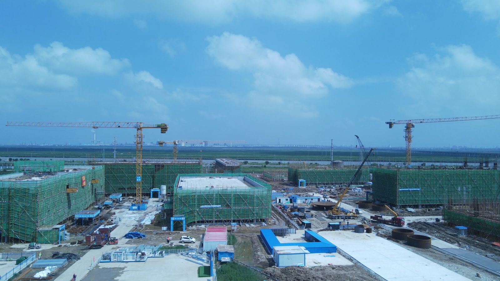 ⑵聯(lián)堿二標(biāo)段610鹵水精制二層梁鋼筋綁扎、柱鋼筋驗(yàn)收完成,模板安裝;612芒硝輸送三層內(nèi)架梁底板搭設(shè);614真空制鹽循環(huán)水站吸水池底板養(yǎng)護(hù);562聯(lián)堿循環(huán)水站基坑開挖;524干銨工段干桉爐預(yù)埋件焊接完成,7~15軸基坑固化土回填,部分設(shè)備基礎(chǔ)澆筑;613濕鹽倉儲(chǔ)輸送±0以下框架柱防腐完成,E軸部分擋墻澆筑;525銨包裝及儲(chǔ)運(yùn)1-7軸基礎(chǔ)砌體抹灰、防腐;601變電所2基礎(chǔ)防腐。