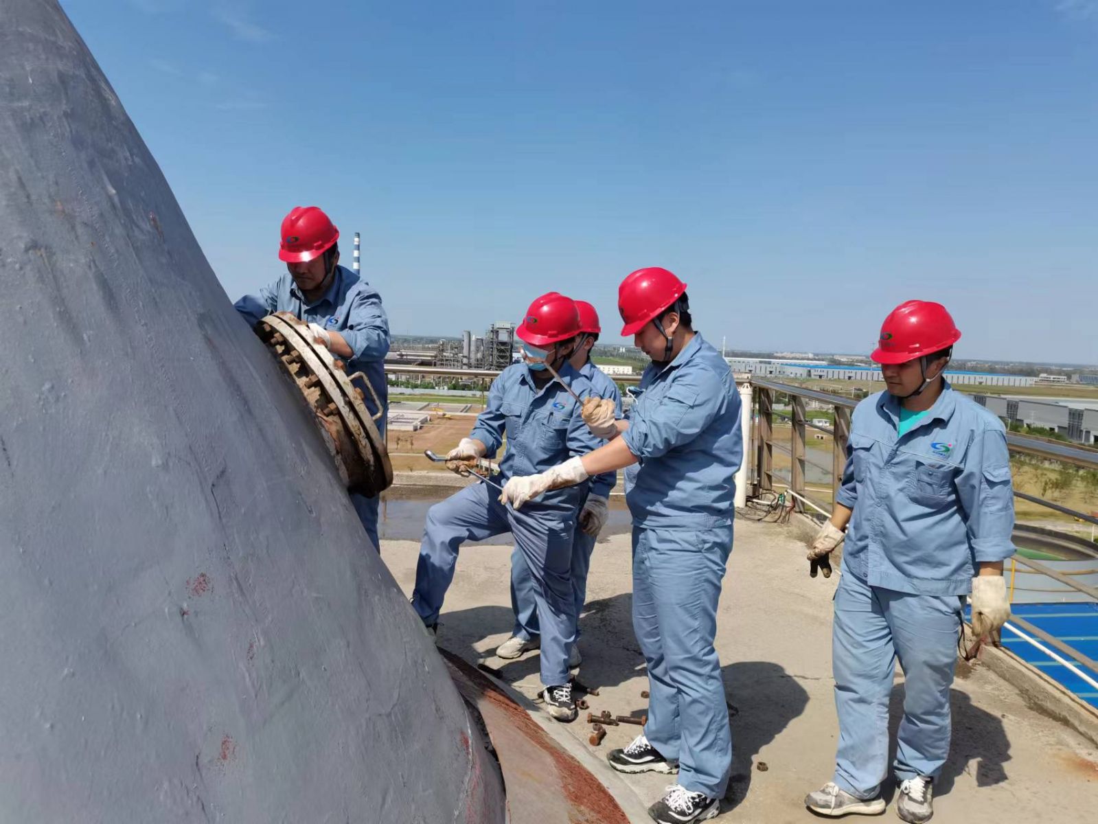 為了保證停車和開車工作的順利進行,停車期間,實習(xí)職工主動協(xié)助當(dāng)班人員打開16個人孔,并在實際操作中重點學(xué)習(xí)設(shè)備檢修、清洗的具體操作流程以及消缺重點難點等。檢修結(jié)束后又全流程參與16個人孔的封堵流程。“平時員工實習(xí)是看不到設(shè)備內(nèi)部結(jié)構(gòu)和檢修全流程的。這次停車檢修消缺,很多設(shè)備都可以打開,對大家來說是一次很好的學(xué)習(xí)機會。通過這次檢修,大家積累了寶貴的檢修經(jīng)驗。”檢修結(jié)束后,大家如是說。
