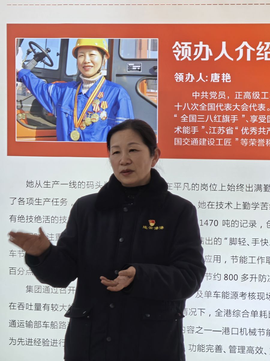 活動第一站,大家乘車前往連云港港口集團(tuán)有限公司,參觀全國勞模唐艷工作室?,F(xiàn)場,勞模唐艷為青年職工們介紹了工作室的情況,講述了自己珍貴的人生經(jīng)歷。唐艷鼓勵大家要樂于奉獻(xiàn)、敢于創(chuàng)新,在平凡的崗位上一步一個腳印,才能創(chuàng)造不平凡的業(yè)績。她的話就像是冬日里的一抹暖陽,為青年職工們的內(nèi)心點(diǎn)燃動力的火焰。