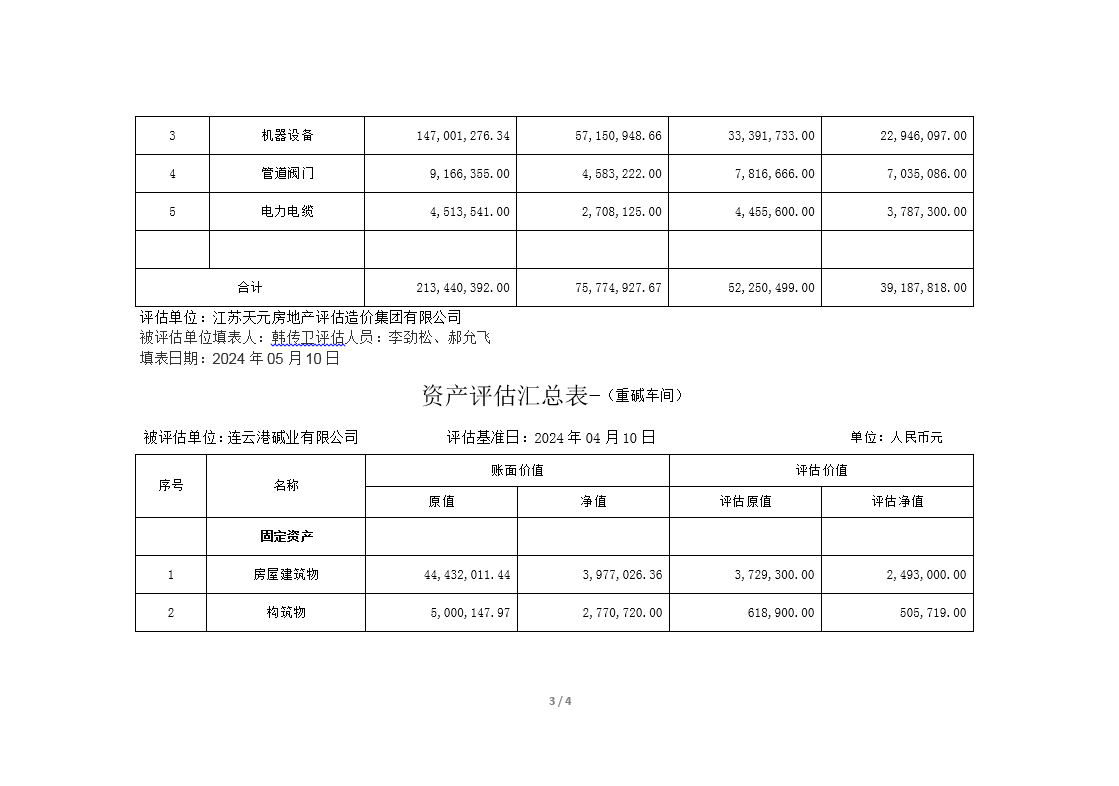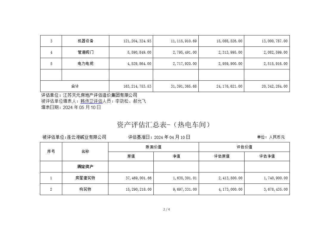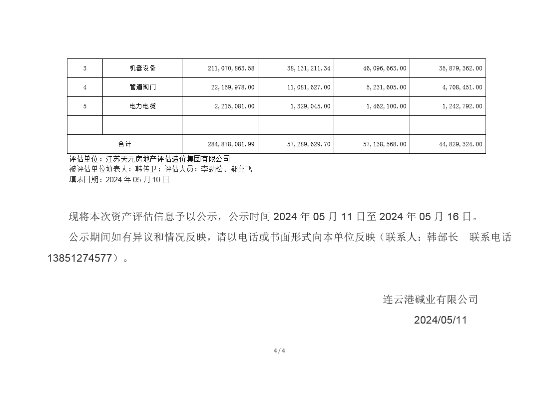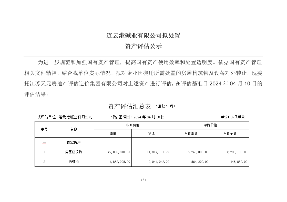 連云港堿業(yè)有限公司煅燒、熱電、重堿車間資產(chǎn)評(píng)估公示
