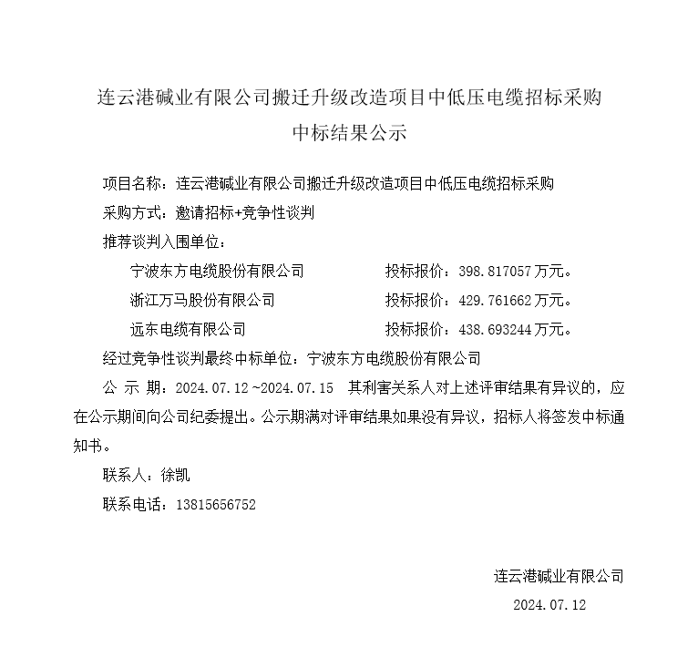 中低壓電纜中標(biāo)招標(biāo)采購(gòu)中標(biāo)結(jié)果公示