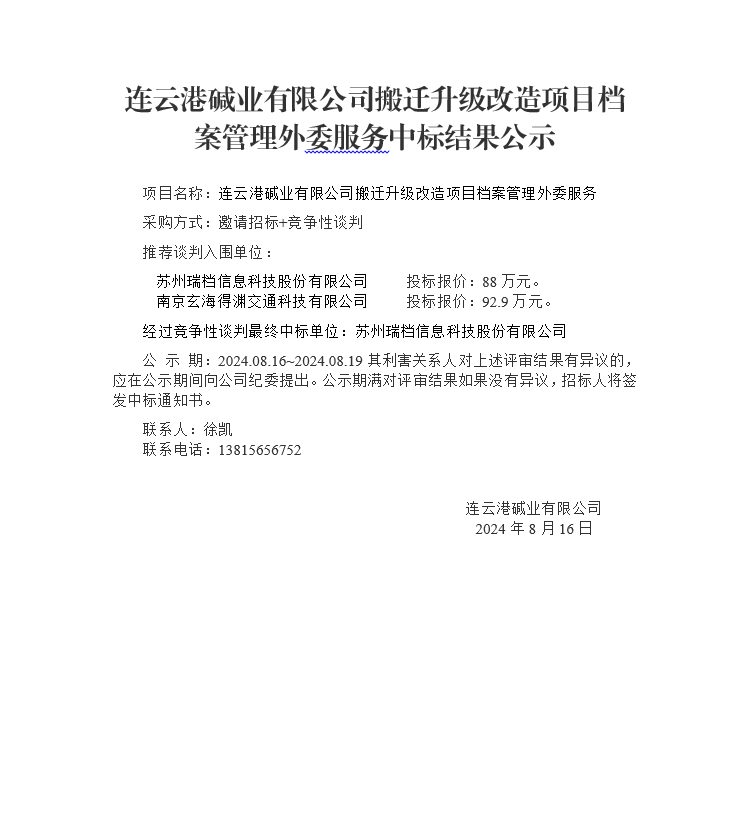 搬遷升級改造項目檔案管理外委服務(wù)中標(biāo)結(jié)果公示